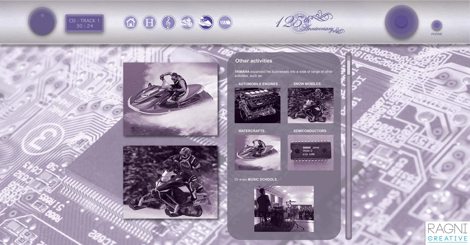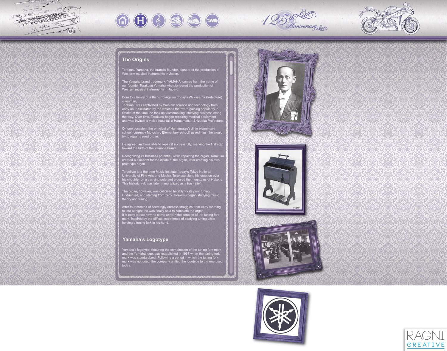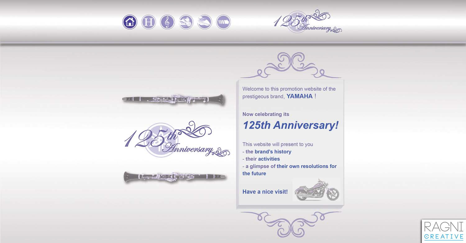 Promotional website mockup to celebrate the 125th anniversary of Yamaha in 2013. A new logo has been created for the event as well.